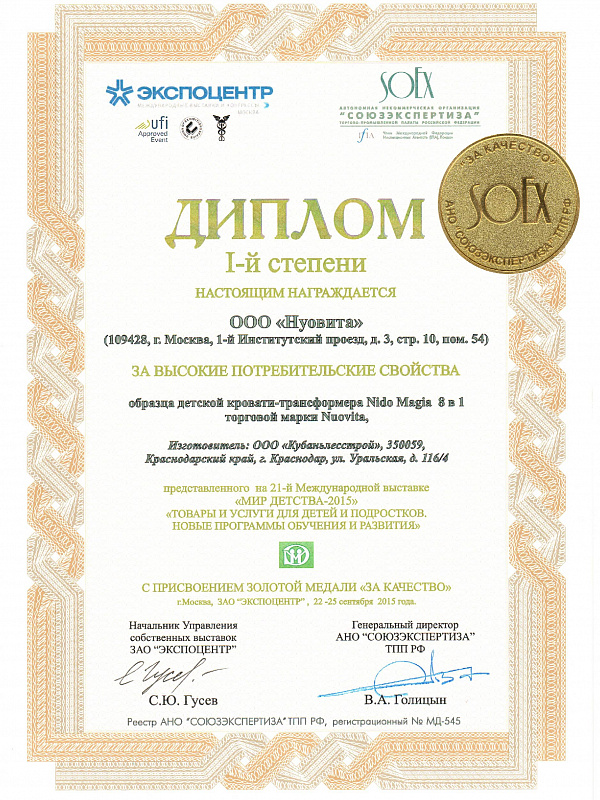 При выборе каждого продукта мы исходим главным образом из тех требований, которые предъявляем сами, как родители. Продукция наших брендов изготовлена на современном технологичном оборудовании с применением новейших научных разработок, проходит обязательную сертификацию и соответствует международным и европейским стандартам качества (EAC, EN 1888:2012, TUV-CERT ISO 9001, GOTS, EOKOTEX 100 CLASS 1 и др.). Вся продукция в нашем ассортименте только от проверенных и надежных производителей и поставщиков.