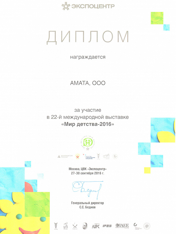 Компания «Амата» - один из крупнейших оптовых гипермаркетов детских товаров. Мы дорожим своим именем и заслуженно гордимся хорошей репутацией, поэтому вы можете быть уверены в своем товаре и быть спокойны за свою репутацию. В нашем ассортименте представлены товары только надежных и проверенных официальных поставщиков, зарекомендовавших себя исключительно с положительной стороны. Это подтверждено множеством наших наград и сертификатов, представленных ниже.