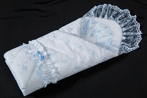 Комплект на выписку Мой ангелок Э2003 Флер, весна - предназначен для новорожденного младенца. Утонченно нарядный, красивый и нежный комплект состоит из двух предметов: конверт и пеленка-кокон. Конверт выполнен из хлопковой ткани – сатина. Декорирован оригинальным кружевом. Утеплитель: экологичное гипоаллергенное волокно – файберпласт, отвечающее нормам ЕС и абсолютно безопасное для малышей. Изделие подлежит ручной стирке при температуре 30-40 градусов. Подобный  конверт подчеркнет торжественность и особенную значимость события, а ребенку будет в нем тепло и комфортно.